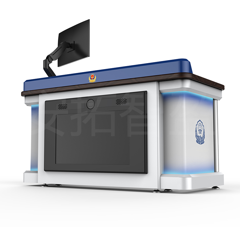 1、设备为一体化集成设备,可集成电脑升降/反转屏、打印机、紧急报警、语音对讲、示证电视、LED显示屏、摄像头、审讯主机、多媒体面板、签字捺印版等选配设备。