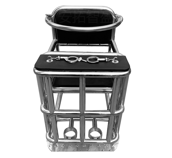 审讯椅桌面上方装有手kao,方便约束其手腕,下部为脚环装置。腰部有安*全杠,防止头部前倾。审讯椅选用国*标201优*质不锈钢材料,包括靠背、座面、椅腿、扶手。