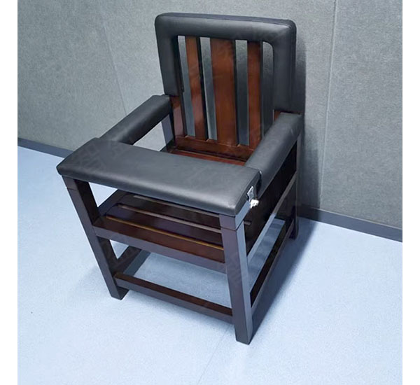 椅子的框架由实木制作,确保在使用过程中稳固耐。椅子的靠背、扶手和挡板部分采用软包材料,主要目的是防止被审讯人员自伤或撞击造成的伤害,同时也能在一定程度上保护审讯人员的安全。 尺寸:950mm*560mm*560mm