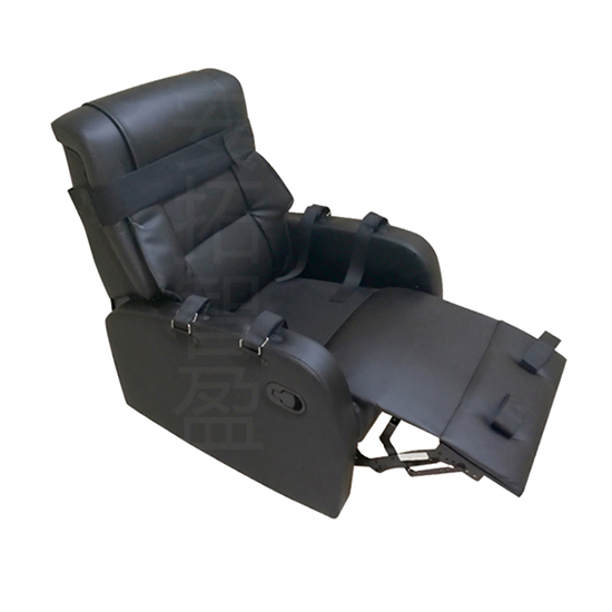 这是一张沙发式醒酒椅,该椅采用软包设计,兼顾舒适性与安*全约束功能。从结构设计上看,该椅配备嵌入式约束带,防止人员挣*脱或自*伤。椅背支持后躺调节,并配有可收放脚拖,便于醉酒人员躺卧休息。四角可固定于地面,确保整体稳固。