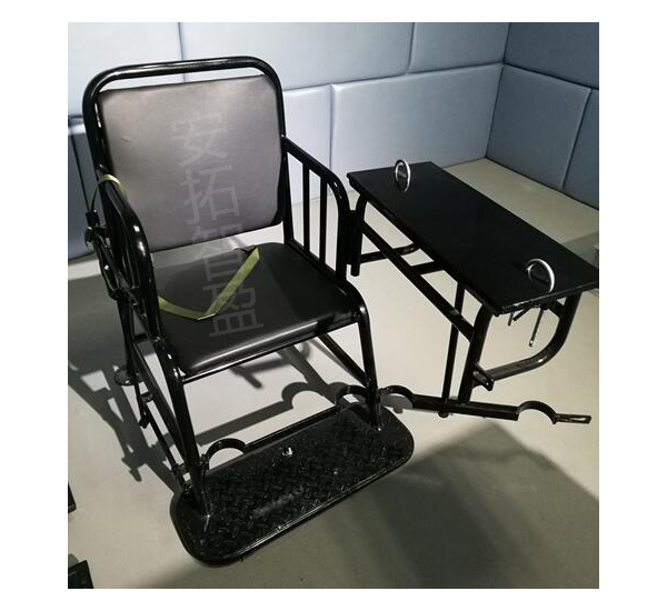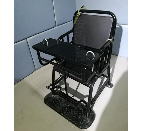 此椅在,座位和后背加装软包坐垫,既保*证了约*束人员的基本舒适度,也避免了因硬质接*触造成的意*外伤*害。椅子一侧有弹性开关,用脚一踩前方笼型门 便可打开,当笼型门关闭时脚部两环正好吻合,不易变形挣脱,前方固定有锁具,与其它椅相同,舒适大方。整体设计注重安*全与规范,符合执*法场所对设备的物理安*全与操作便*捷性要求。