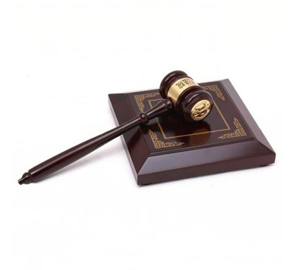 该法*锤整体采用实木材质,实木封边,纹理自然、清晰。锤身与底座均呈现深色胡桃木纹,经过高温烘干、防虫、防腐处理材质坚硬钢性强,不易变形。采用进口木器专*用漆,经过先进的饱和漆工艺精心处理,无颗粒,无气泡,色泽均匀,漆面光泽度高。锤头部分嵌有金属铭牌,可定*制刻字或单位标识,增强专属感与仪式感。底座为方形设计,边缘饰有传统回纹图案,寓意“规矩与公*正”,与法槌的司法功能相呼应。锤柄修长,握感舒适,便于法官在庭审中精准操作。