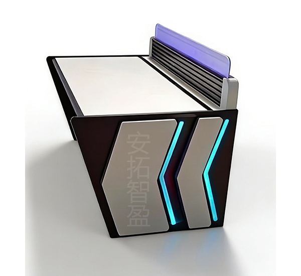 这是一张操作、指挥台一体智能桌,设计简洁实用,属于现代科技感的监控调*度设备。表面平整,外观现代,线条硬朗,兼具美观与功*能性。支持多屏联动,便于实时监控与数据处理。