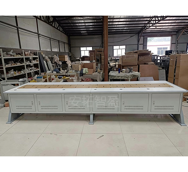 这是一张操作、指挥台一体化智能桌,设计简洁实用,属于现代科技感的监控调*度设备。优*质冷轧钢板,承重强、抗变形,多道前处理和静电喷涂,防锈耐磨,无毒异味,钢板/防火板/烤漆台面,适配不同场景需求。下柜前后透气孔,单/双/三联可拼接,从小型机房到指挥中心全覆盖。