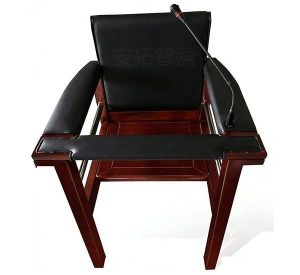 3、扶手处安装固定式万向扩音设备,采集讯问语音清晰稳定,适配同步录音录像。台板与扶手间施加500N作用力不被开启,约束可靠;整体可靠性>3000次。