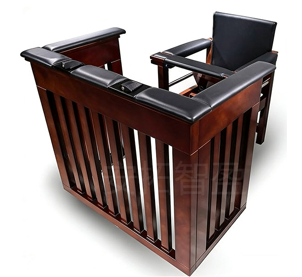 这款木质软包审讯椅,采用橡木制作,基材采用全实木,高温定型不开裂,耐用抗变形。重体海绵和优*质西皮,抗静电耐磨透气,久坐不塌陷。铰链和舌簧锁锁定,500N作用力不开启,安*全防挣脱。扶手处固定扩音设备,清晰采集讯问语音,适配同步录音录像。产品适用于检cha院、公an局、pai出所、看shou所等作讯问、询问嫌疑人用。