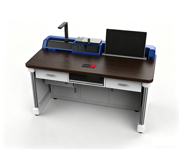 ②桌体正前方可加装7.5cm直径jing徽、摄像头、音响、录音等设备;